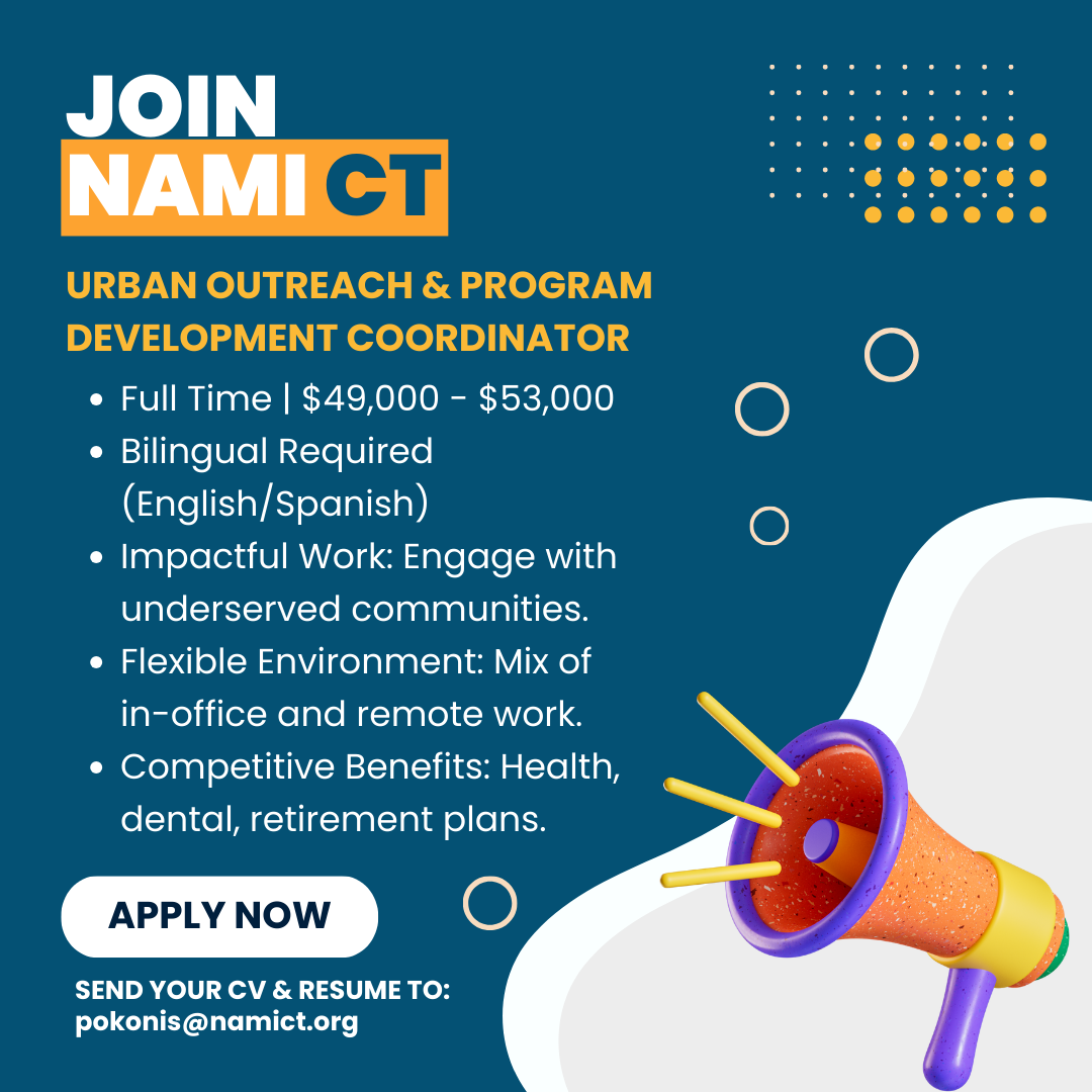 Join NAMI Connecticut in their mission to support, educate, and advocate for those affected by mental health conditions. They are looking for a passionate and driven individual to lead outreach efforts in urban areas and make a meaningful impact in communities like Bridgeport, Hartford, New Haven, New Britain, and Stamford.